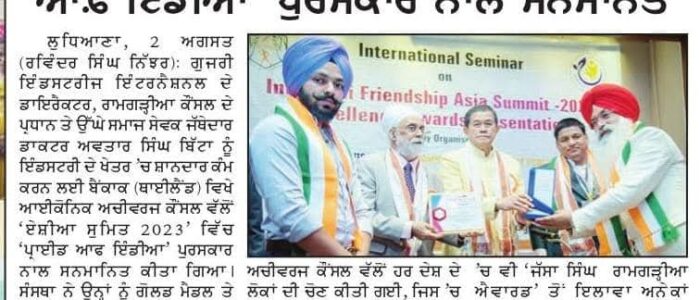 Gujri Industries International Pvt. Ltd. is proud to announce that we were honored with the prestigious Pride of India Award 2023 during an international ceremony held in Bangkok, Thailand in July 2023. This recognition celebrates our consistent innovation, leadership, and excellence in the field of sheet metal machinery manufacturing.
